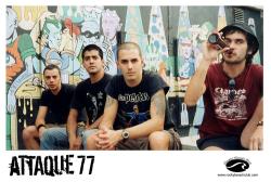 <p>Attaque 77 ("Attack 77") is an Argentine punk rock group formed in 1987. Formed in 1987 as a group of friends who got together to play their favorite songs, most of them by The Ramones, their favorite band and the one that influenced them the most. They started writing songs in the same punk rock style, with lyrics with proletarian content (about exploited factory workers, etc.), and wore denim jackets, which became one of their hallmarks in their beginnings. Currently, only three members continues to making shows and new recordings.</p>